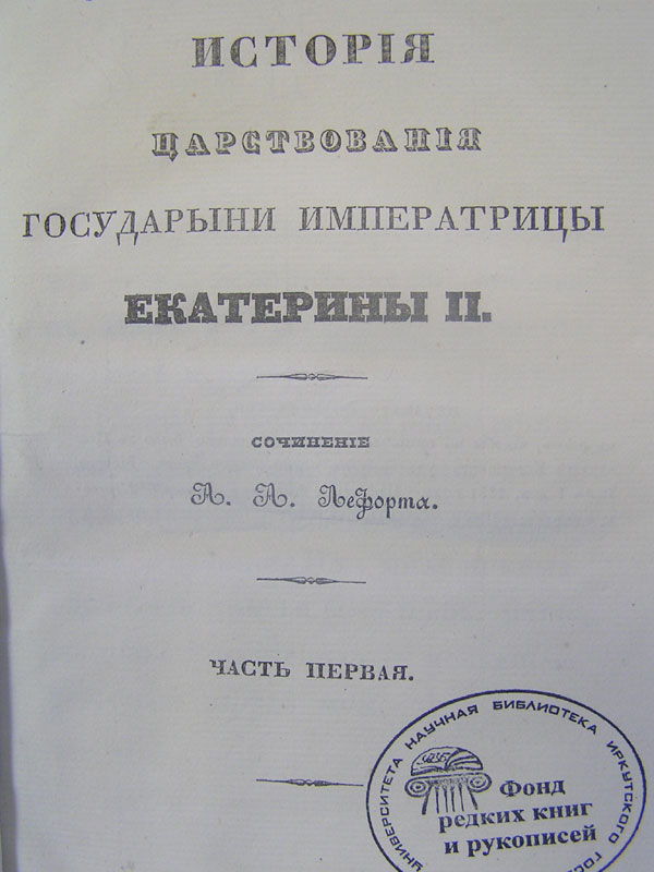 Лефорт, А. А. История царствования государыни императрицы Екатерины II. : в 5 ч. / А. А. Лефорт. – М. : Тип. С. Селивановского, 1837. – 5 т.
