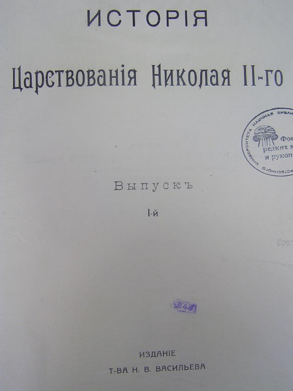 История царствования Николая II-го . Вып. 2. – М. : Изд. Т-ва Н. В. Васильева, 1917. – 48 с.